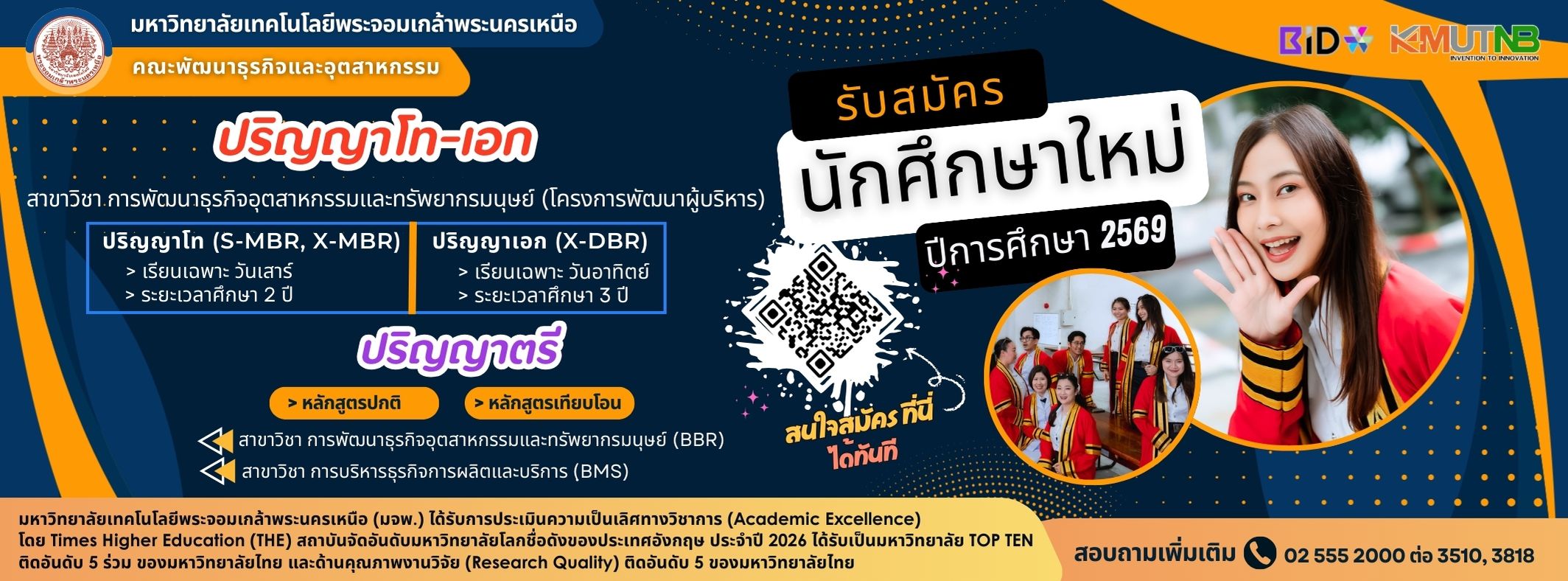 คณะพัฒนาธุรกิจและอุตสาหกรรม มจพ. เปิดรับสมัครนักศึกษาใหม่ ปีการศึกษา 2569 ระดับปริญญาโท (X-MBR,S-MBR) และปริญญาเอก (X-DBR...