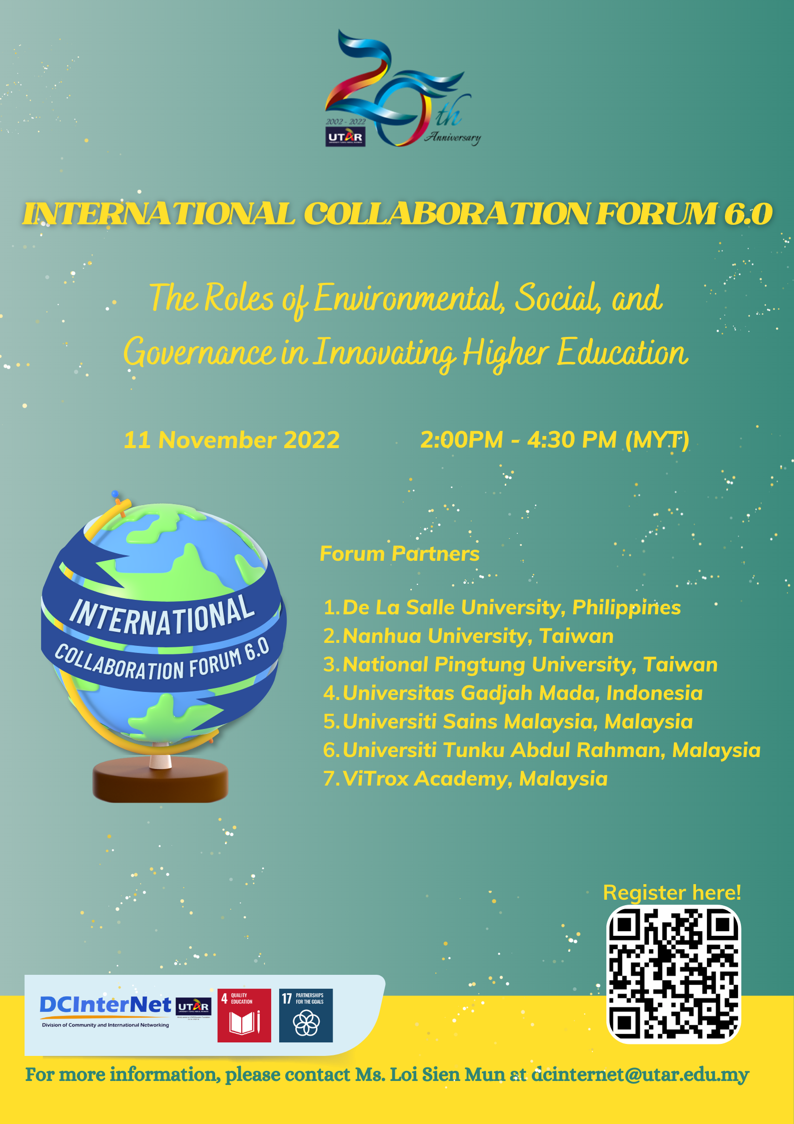 มหาวิทยาลัย Universiti Tunku Abdul Rahman ประเทศมาเลเซีย เชิญเข้าร่วมการสัมนาในหัวข้อ "International Collaboratio