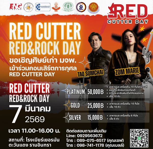 สมาคมศิษย์เก่า มจพ. ขอเชิญร่วมงาน “RED CUTTER RED & ROCK DAY” คอนเสิร์ตการกุศลระดมทุนสนับสนุนกิจกรรมสาธารณประโยชน์ กระชับสายใยศ...