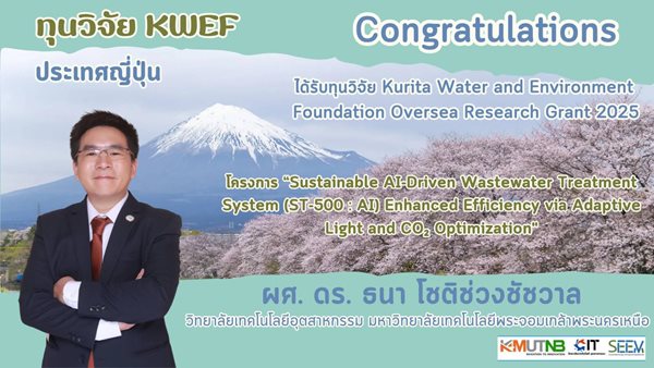 ผศ.ดร.ธนา โชติช่วงชัชวาล จาก วทอ. ได้รับทุนวิจัย Kurita Water and Environment Foundation (KWEF) Overseas Research Grant 2025 เพ...