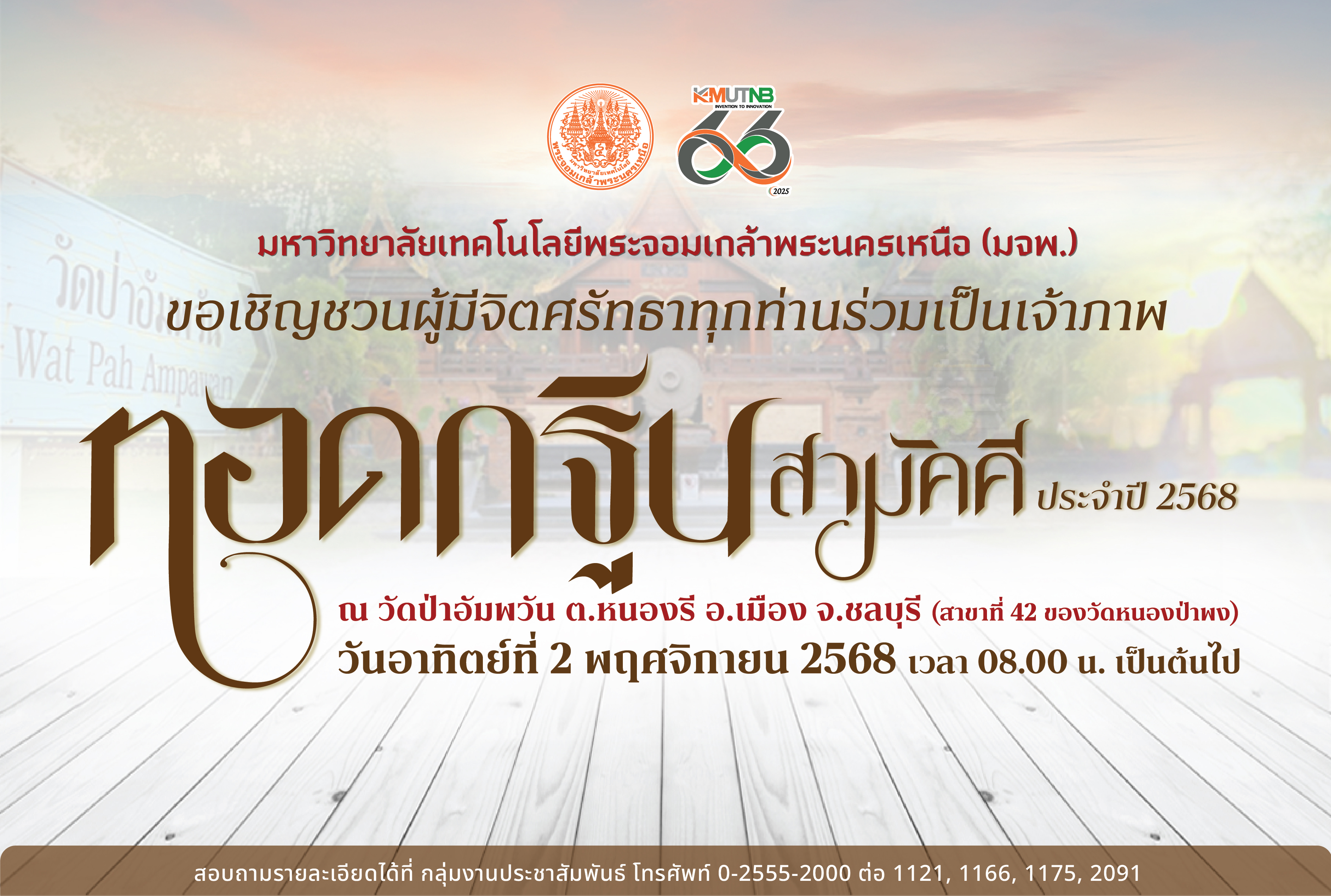 มจพ. กำหนดทอดกฐินสามัคคี ประจำปี 2568 ณ วัดป่าอัมพวัน จ.ชลบุรี 2 พ.ย.นี้