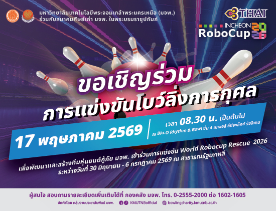 มจพ. จัดแข่งขันโบว์ลิ่งการกุศลเพื่อหารายได้สนับสนุนทีมหุ่นยนต์กู้ภัย iRAP Robot เข้าร่วมการแข่งขัน World Robocup Rescue 2025 ณ...
