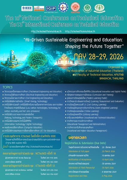 คณะครุศาสตร์อุตสาหกรรม มจพ. ร่วมกับสมาคมครุศาสตร์อุตสาหกรรม (ประเทศไทย) จัดการประชุมวิชาการครุศาสตร์อุตสาหกรรมระดับชาติ ครั้งที...