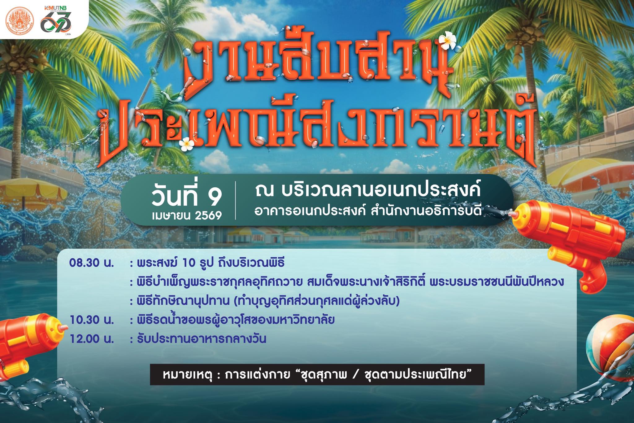 มจพ. ขอเชิญบุคลากรทุกท่านร่วมงานสงกรานต์ ประจำปี 2569 วันที่ 9 เม.ย.นี้