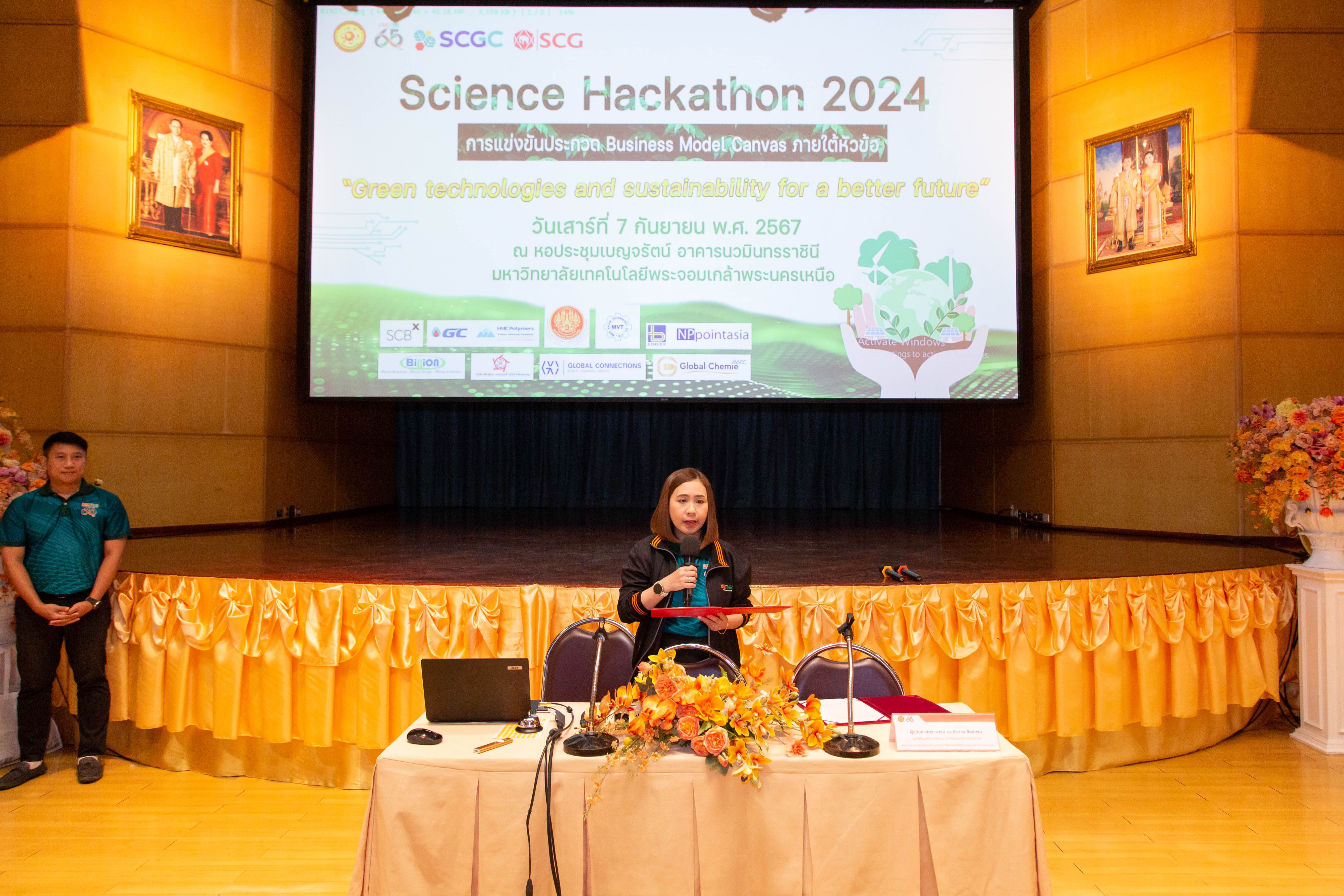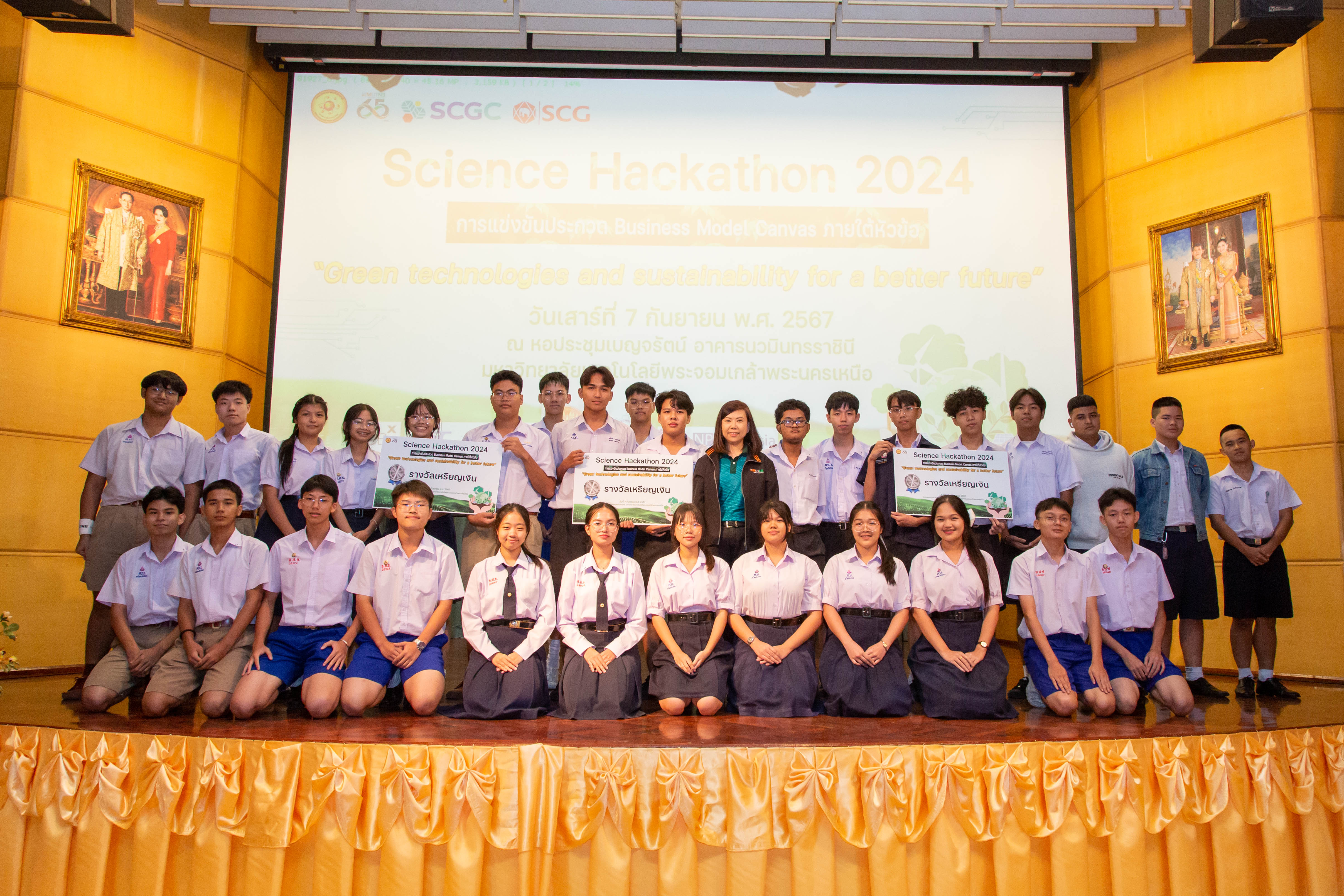 เมื่อวันที่ 7 กันยายน 2567 ณ หอประชุมเบญรัตน์ อาคารนวมินทรราชินี มหาวิทยาลัยเทคโนโลยีพระจอมเกล้าพระนครเหนือ (มจพ.) ผู้ช่วยศาสตราจารย์ ดร.ชัชวาล สิงหะพล รองคณบดีฝ่ายพัฒนาวิจัยและบริการวิชาการ คณะวิทยาศาสตร์ประยุกต์ กล่าวต้อนรับคณะครูและนักเรียนในพิธีเปิดโครงการ Science Hackathon 2024 ภายใต้หัวข้อ Green technologies and sustainability for a better future โดย ผู้ช่วยศาสตราจารย์ ดร.เสาวภา ถ้ำสิงห์ นิยมไทย ผู้ช่วยคณบดีฝ่ายวิจัยและนวัตกรรม รายงานวัตถุประสงค์การจัดงาน เพื่อให้นักเรียนมัธยมศึกษาตอนปลาย ชั้นปีที่ 4 - 6 ได้ทำกิจกรรมในรูปแบบ Design Thinking Workshop ออกแบบ Business Model Canvas และประกวดผลงานโดยนำเสนอแบบ Pitching โดยมีทีมนักเรียนที่มาเข้าร่วม จำนวน 42 ทีม จำนวน 162 คน จากโรงเรียนในเขตกรุงเทพมหานคร ปริมณฑล และต่างจังหวัด สำหรับทีมโรงเรียนที่ได้รับรางวัลคะแนนรวมสูงสุด รางวัลเหรียญทอง และรางวัลทุนการศึกษา จำนวน 10,000 บาท ได้แก่ ทีม Straight flash idea จากโรงเรียนพระมารดานิจานุเคราะห์ ประกอบด้วย 1. นาย ภูริณัฐ เอื้อมอิสระโยธิน 2. นาย ณัฐวัฒน์ ศิริเขต 3. นาย สิรวิชญ์ ตั้งจิตร์มั่นคง 4. นาย อาติญะ ครุวรรณ ในการนี้ได้รับเกียรติจาก รองศาสตราจารย์ ดร.เพียรพูล กมลจิตร์ประภา คณบดีคณะวิทยาศาสตร์ประยุกต์ เป็นผู้มอบรางวัล